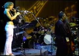 SS: ...Palladium crowd. A lot of the African-Americans have started Mambo back in the '50s, and loved to mambo and mambo two or three times a week, but at that time they had to dance to predominantly Spanish music. One of the things that is exciting for Dwight and I is because he was raised on the latin side of the music, but I was raised on the jazz side of the music, and what we did was we put his latin sensibilities with me singing R&B and jazz standards, so that when the African-Americans come, they usually hear latin music to mambo to, now they can dance to their favorites, you know...